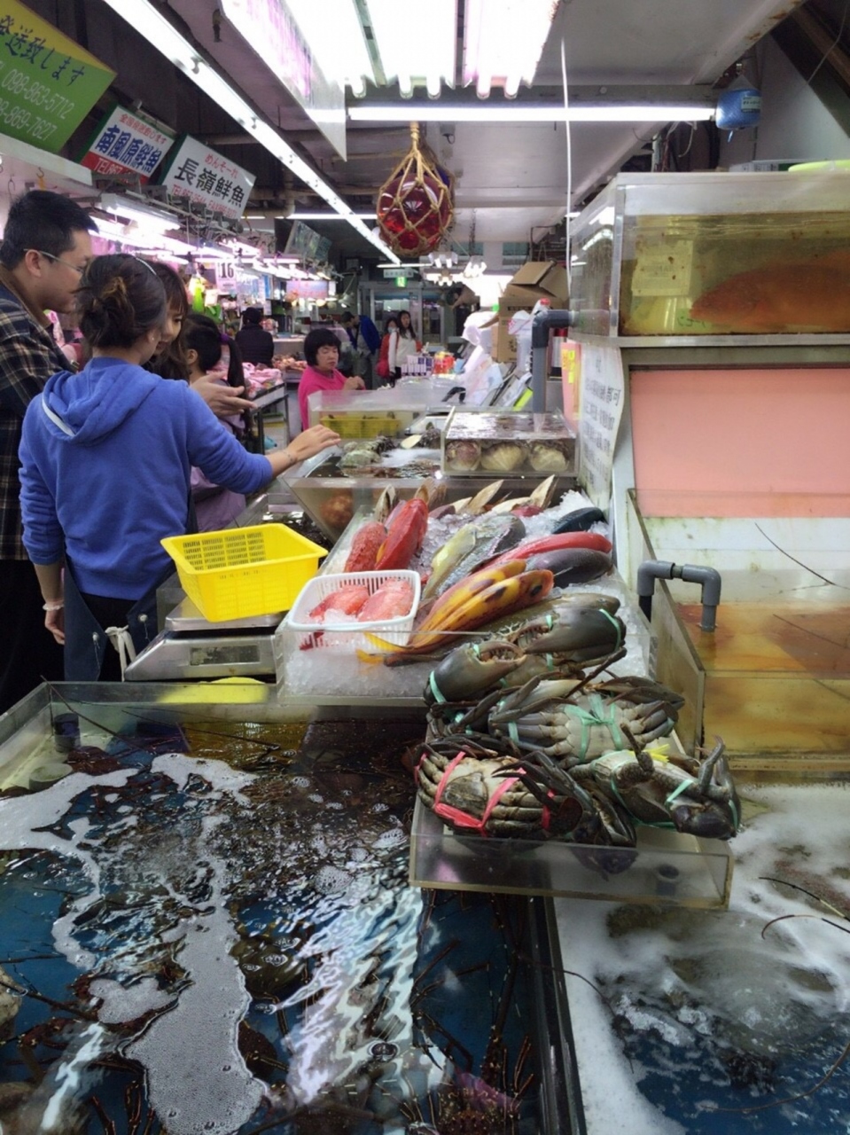 お土産を買いに国際通りへ。アーケード街の中にある市場に行きました。食材が売っている1階と食堂街となっている2階があります。1階の売り場のものを買って2階で調理をしてもらい食べることもできるようです。