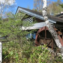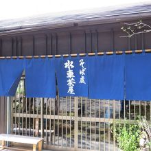 このエリアの競争が激しいであろう蕎麦屋は、古民家風や清潔感溢れる造りだったりしますが、この店はそのどちらでもなく、「ただ古い」と言った感じの店構え。名前の通り、店の前には水車があります。