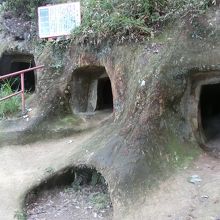 軍需工場跡の大きな洞窟が縦横に何列かあります。