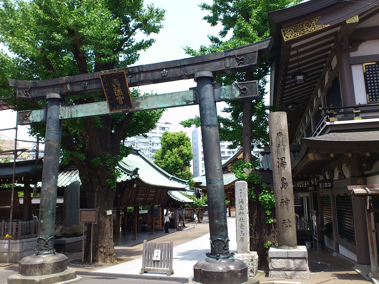 地下鉄千代田線の湯島駅から歩いてすぐの場所にあります。湯島天神とも呼ばれますが、天満宮なので、学問の神様の菅原道真公に関係する場所です。ですので境内には牛の像もありました。泉鏡花の婦系図で有名な梅園があり、筆塚もあります。多くの観光客で賑わっていました。