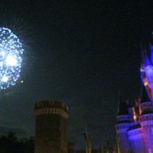 シンデレラ城の前でワンスアポン ア タイムが始まるのを待っていると、約20分前にシンデレラ城のライトアップが変わり、左手から花火が打ち上がりました。約5分程と短い花火ですが、打ち上げられる花火は各地で開催される花火大会と同じ大きさ。ワンスアポン ア タイムの待ち時間にやってくれるのは売りしい限りです。