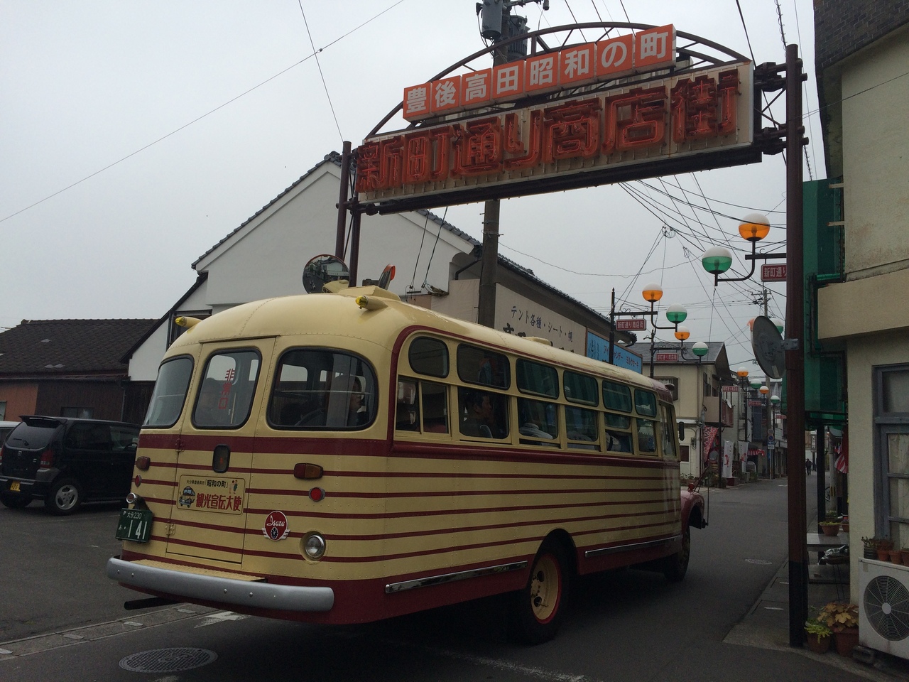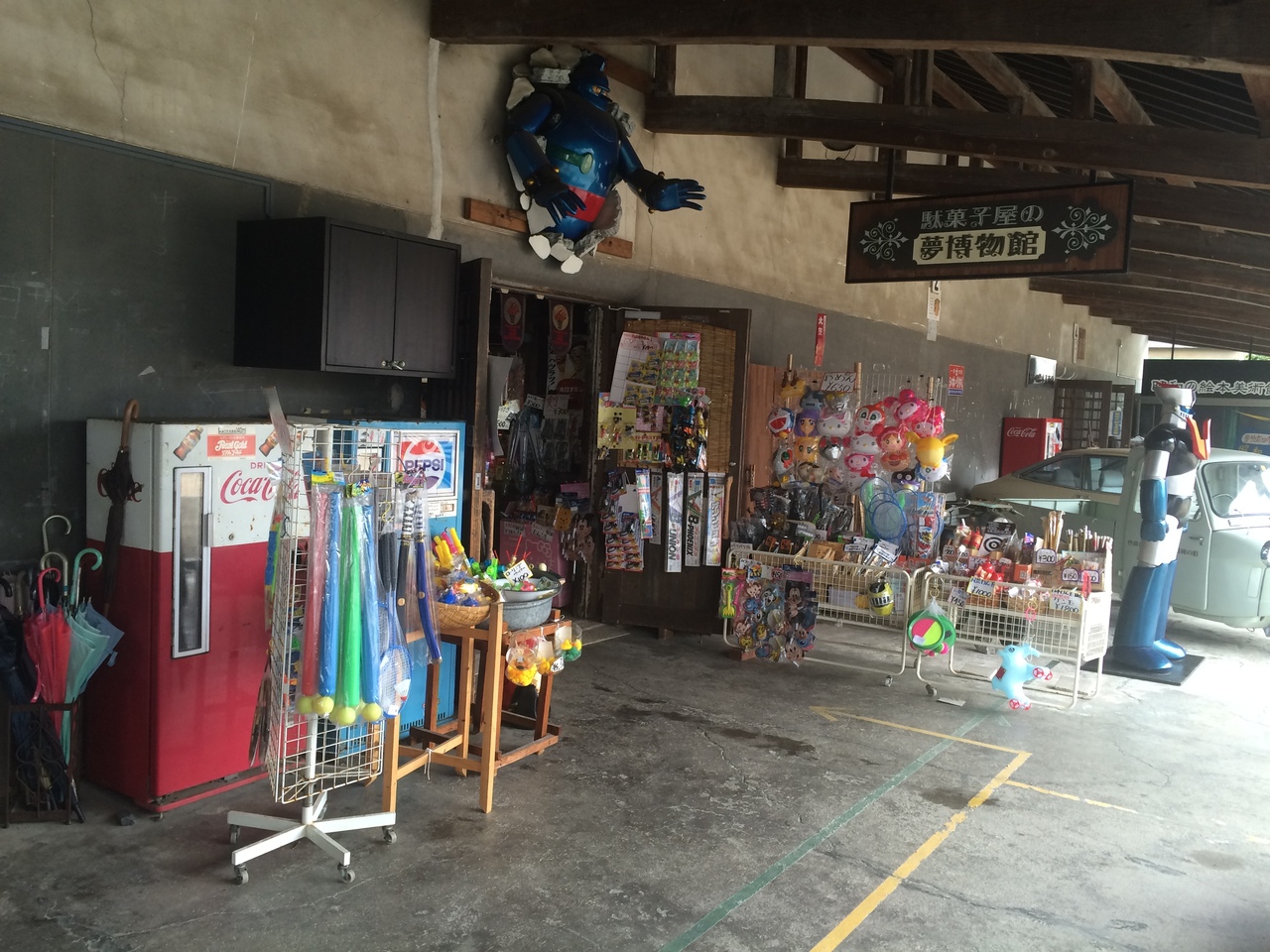 500メートルぐらいの通り沿いに昭和時代を思い出す店が連なっています。食べ物屋、肉屋、呉服店、昆虫を売っている店までありました。懐かしい昭和を思い出させる通りです。有料施設ですが昭和ロマン蔵がオススメで駄菓子博物館、絵本美術館等がありボンネットバスには予約制で無料で街中を案内してくれ乗車出来ます。