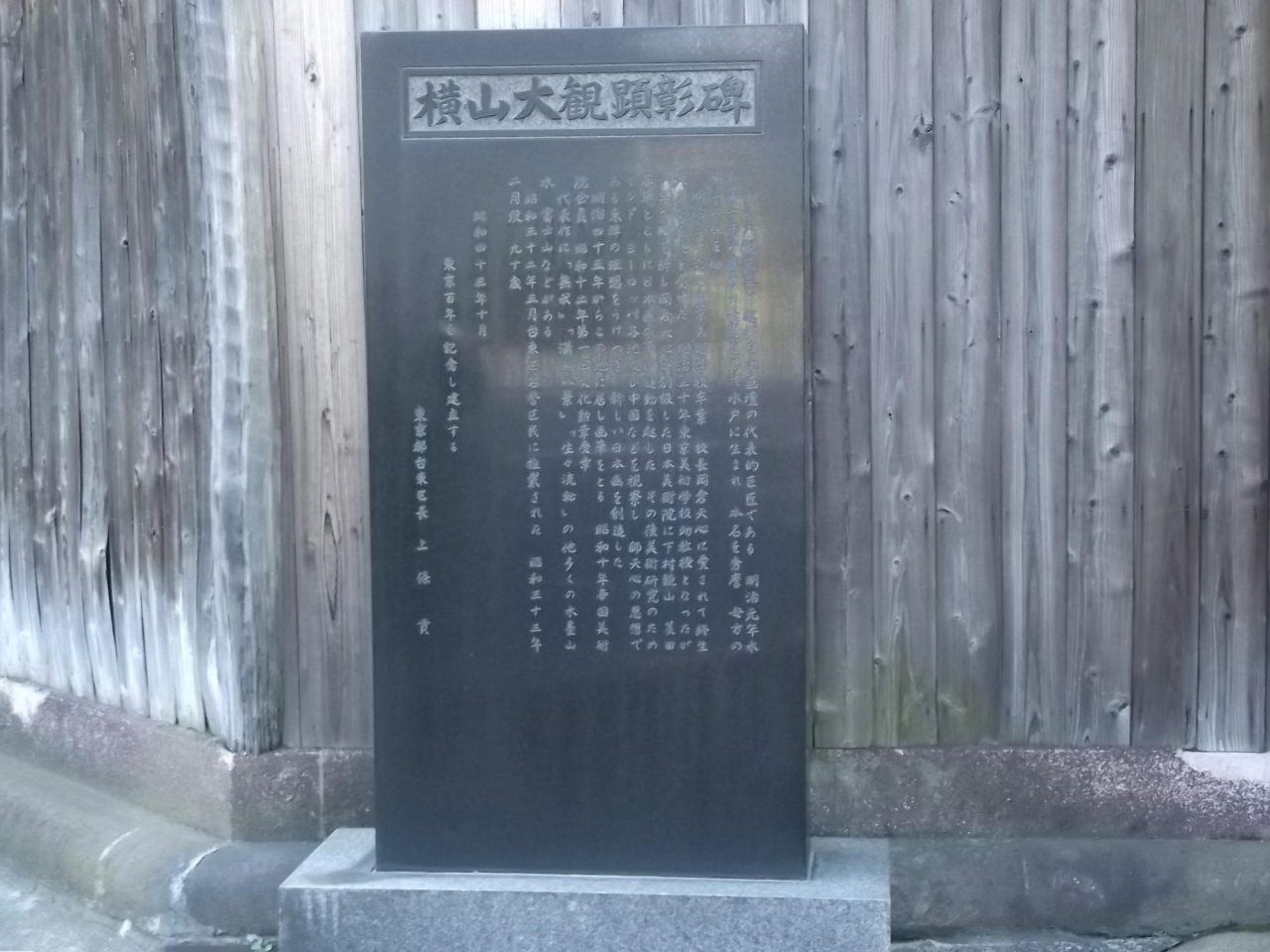 横山大観が数々の作品を生み出した邸宅跡で、現在は記念館になっている玄関脇に建ててあります。