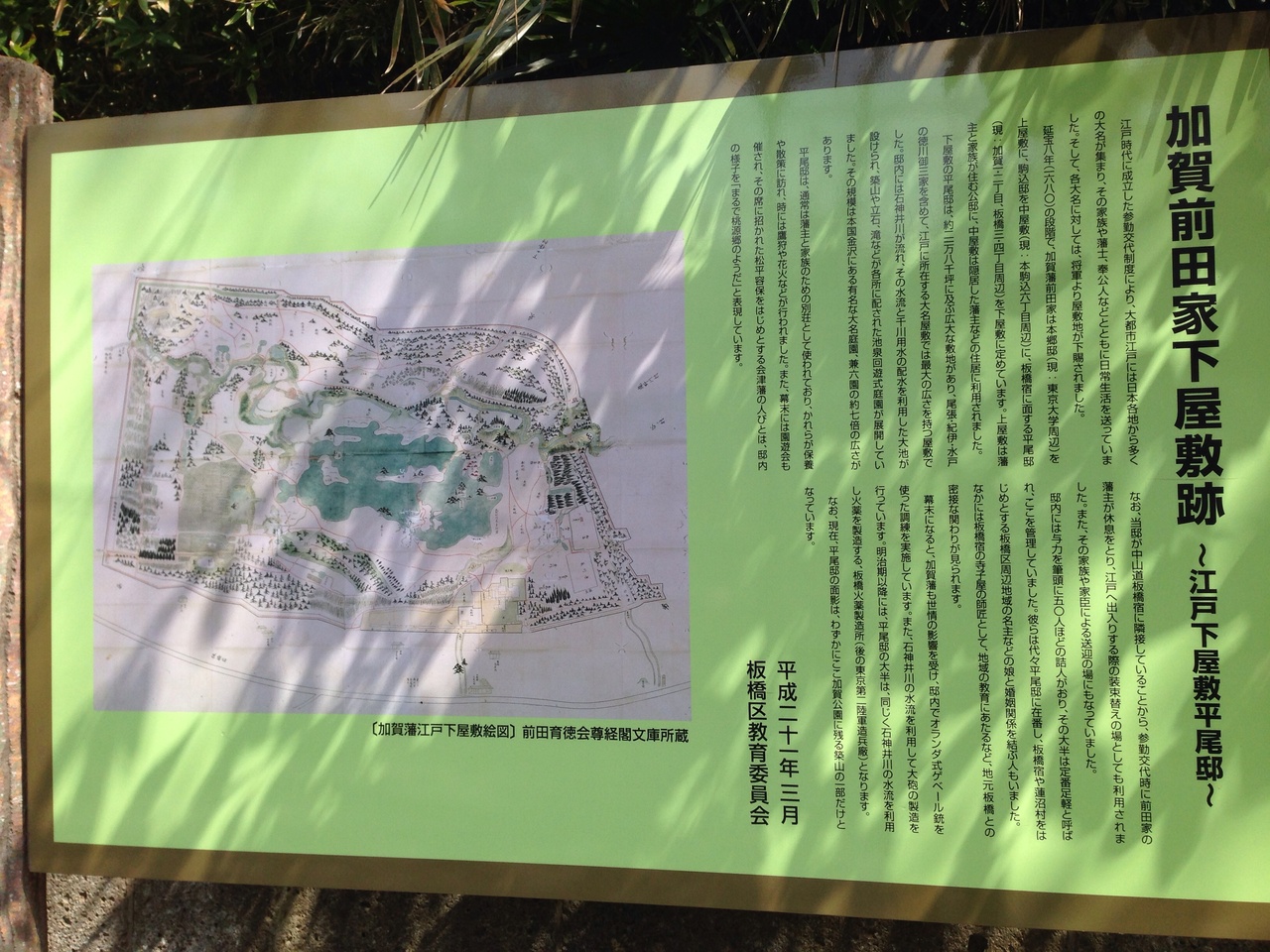 十条と板橋の間 石神井川添の加賀公園内にあります。加賀前田家の下屋敷と言う事で 上屋敷は東大のあたり、中屋敷は駒込…そしてここ。なんとも広い土地、区ひとつ分位ありそうです。