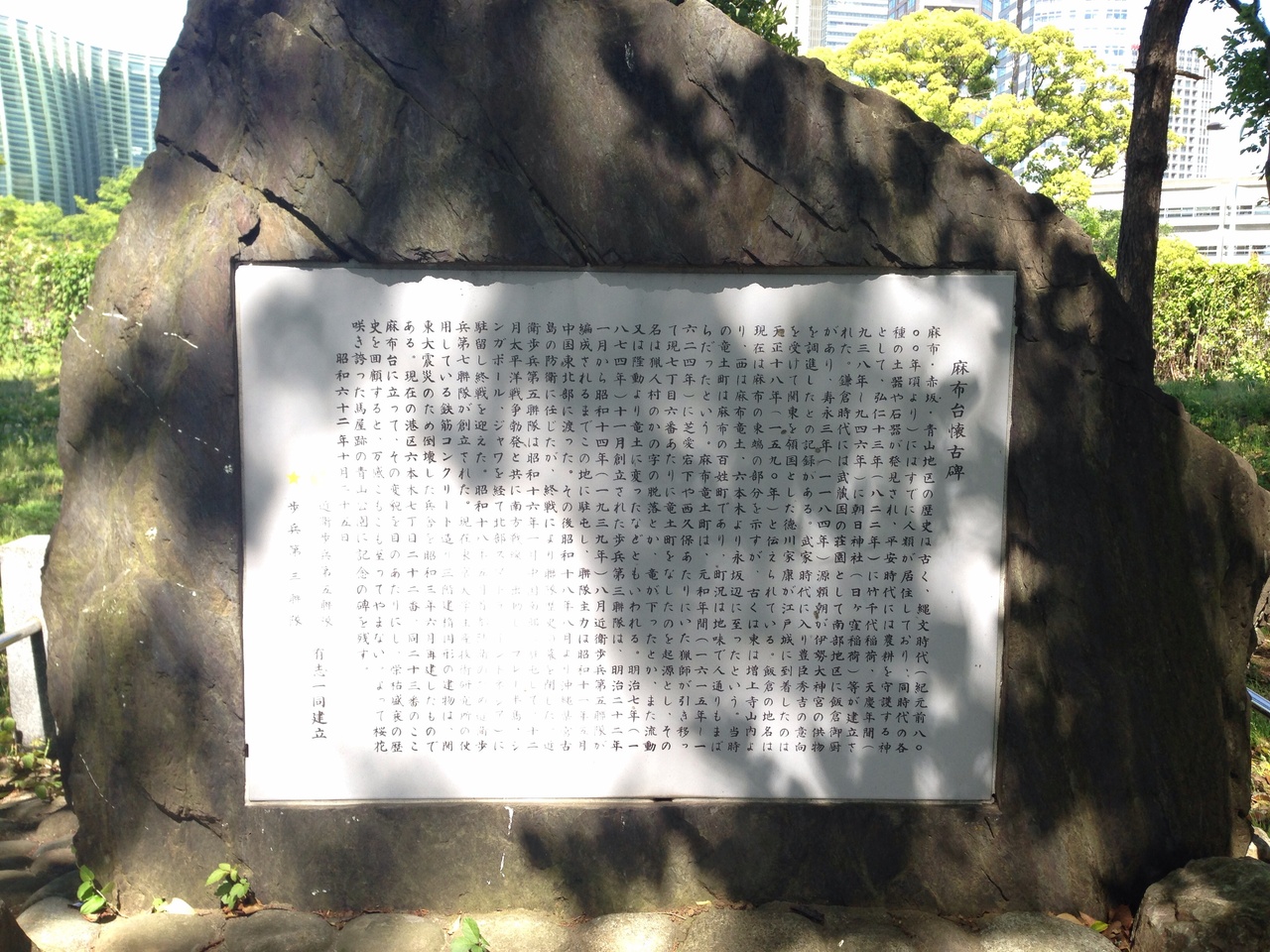 青山公園の真ん中に小高い丘がありそのてっぺんに碑が建っています。読んでみると この辺り縄文時代から人が住んでいたという 驚きのエピソードに始まり、地名の移り変わり等、沢山の歴史が書かれていました。