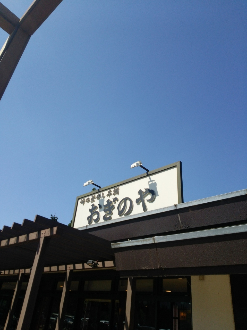 上信越自動車道(上り線)の横川サービスエリアにある「おぎのや」です。「おぎのや」と言えば、「峠の釜めし」が有名ですが、この釜めしをサービスエリアで食べることができます。また、サービスエリア内には昔ながらの汽車の車両があり、この車両の中の座席で釜めしを食べることもできます。