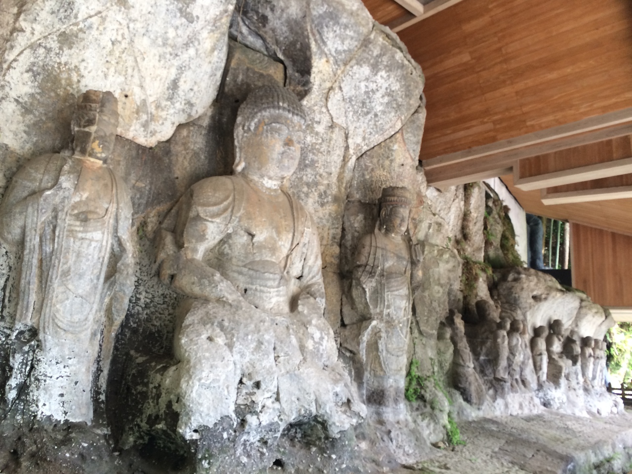 美術博物館とのセット券があり、先に美術博物館を見て石仏群を見て回ると石仏群の事が良くわかります。石仏群は周遊ルートがあり30分ぐらいで見る事が出来、岩をくり抜いたような作りになっています。ほとんどの石仏群にも屋根を取り付けています。石仏群は石が欠けた石仏もあり緑豊かな場所にあります。