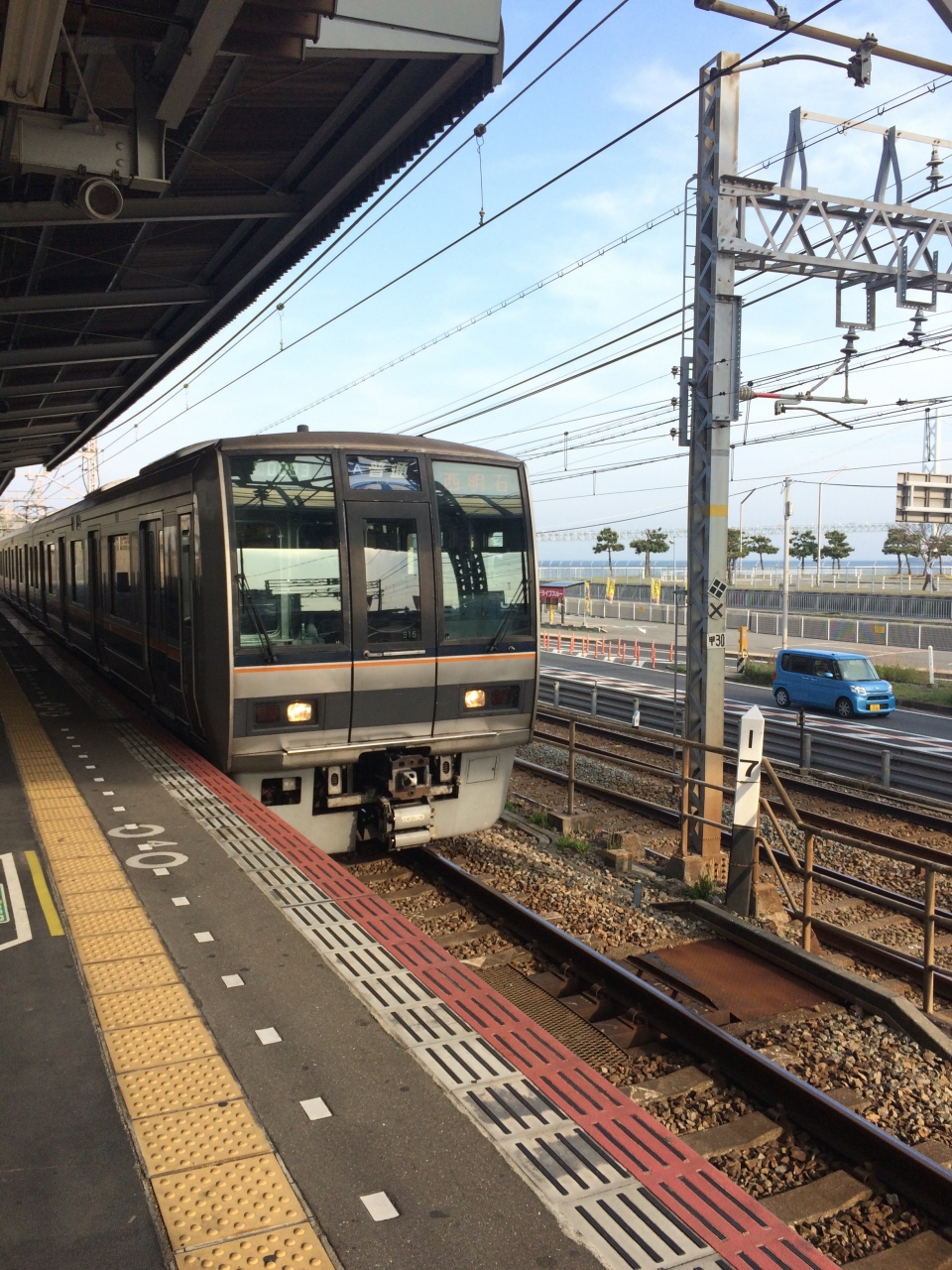 各駅停車は西明石から京都の間をメインに運行しています。その他、新快速などもありますが、乗り換えも同一ホームで出来るようにしているあたりは、JR東日本の列車よりも乗りやすいと思います。各駅停車は空いていますが、新快速はものすごく混雑します。