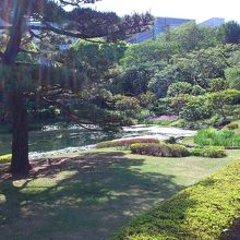 皇居東御苑の江戸城本丸跡の広場から二の丸雑木林を通って行くと、綺麗な庭園に出ます。真ん中に池があって、その周りを回遊できる構造になっています。あちこちにベンチが置かれていて、ゆっくり庭園を眺めることができるようになっています。そんなに観光客も多くなく、庭園を鑑賞できます。