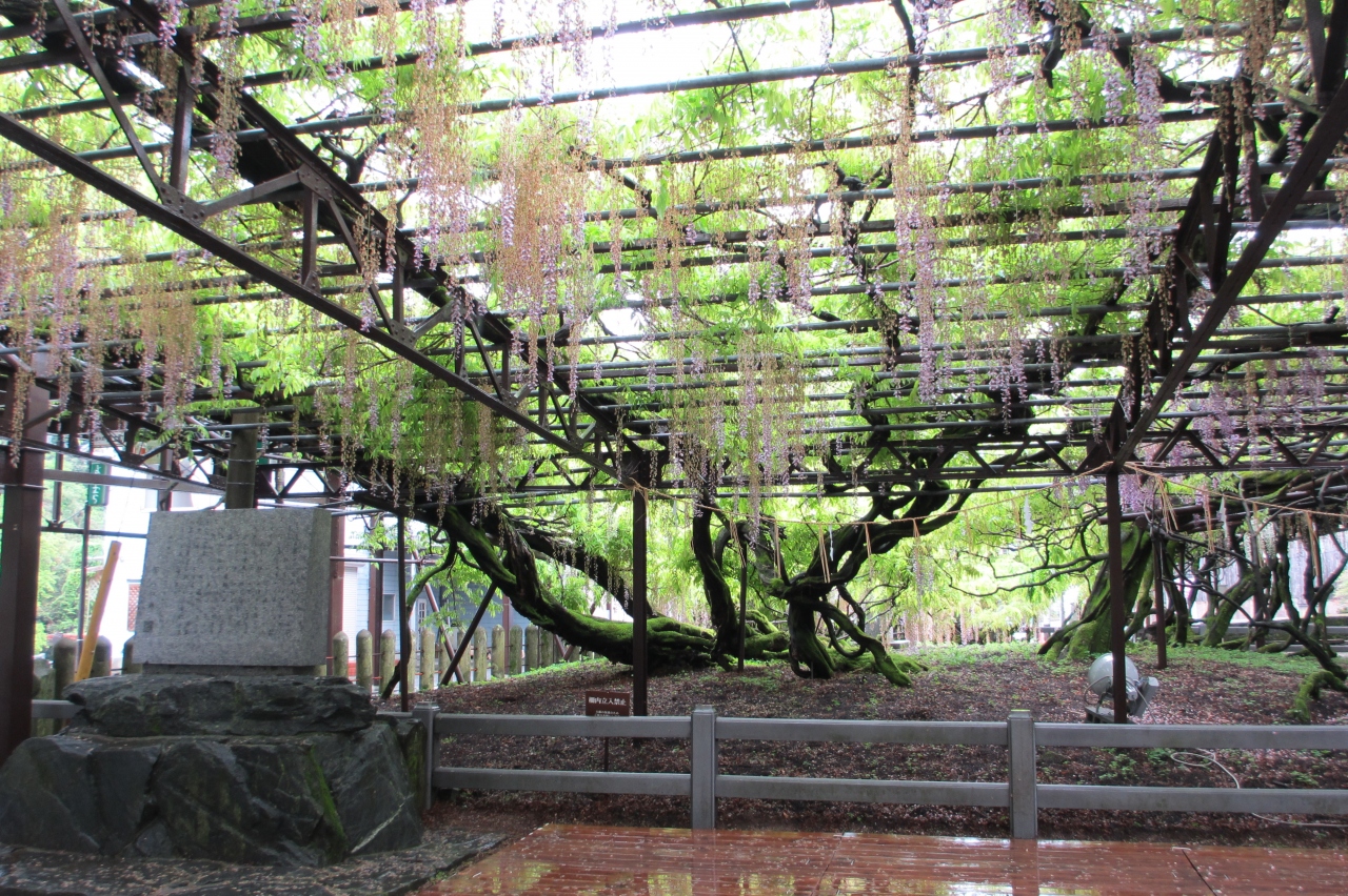 樹齢600年以上で天然記念物を含めた藤棚の面積は3000?もあります。