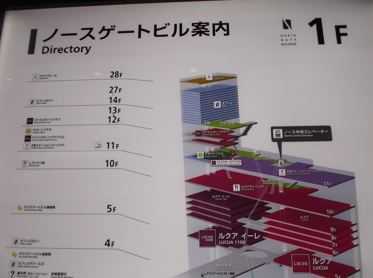 JR大阪駅から直結のショッピングビルです。 ルクア1100等と合わせて、「ノースゲイトビルディング」と言います。