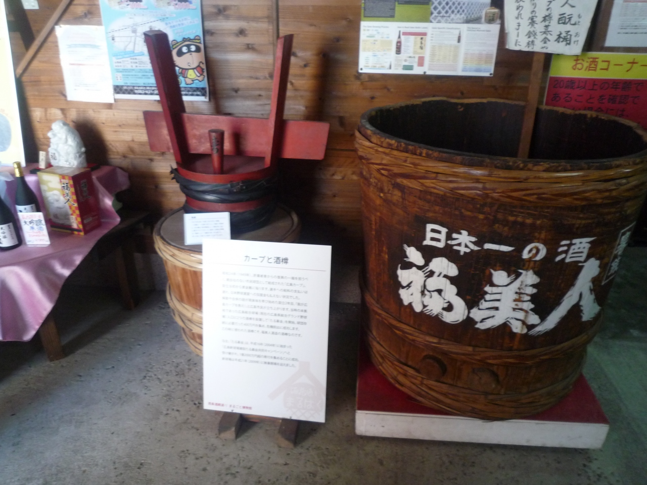 干支ボトルの出荷も全国一だそうで、カープ支援のために使った募金の樽も展示されていました。