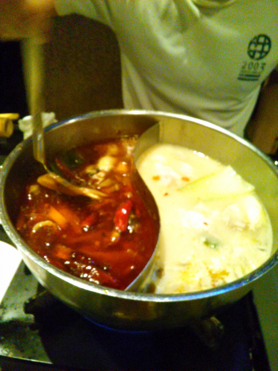 お鍋のスープは深みがあり、おいしいです。辛いですが、赤いほうが好きです。スープが少なくなってくると白湯スープを継ぎ足してくれます。