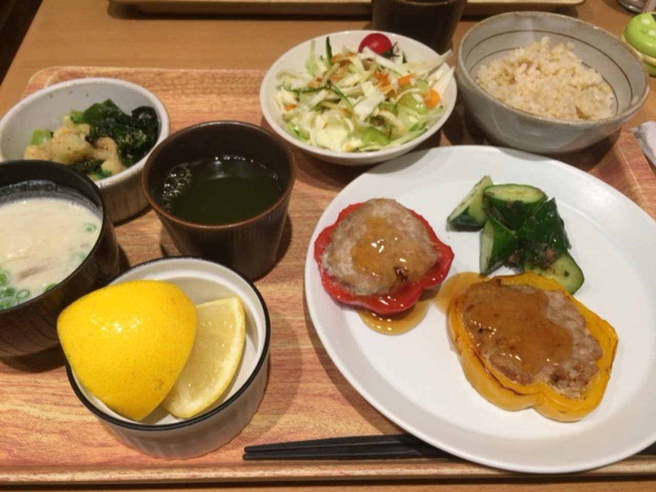 帝劇観劇前に丸の内国際ビルヂング地下1階のタニタ食堂に行ってきました。11時オープン直後に行った為 席は確保。日替わりのササミの衣揚げレモンあん830円と、週替わりのパプリカのカラフル肉詰め1100円の2種類とプリンなどのスイーツも有りました。食券を買ってトレーを持って 主食が出来上がるのを待ちます。ご飯は白米と玄米を選べます 自分でよそうので量も調節出来ます。瞬く間にいっぱいになり出る頃には行列が出来てました 味は薄味でしたが 体に良さそうで 又来たいです。