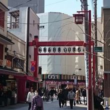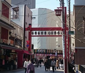 浅草寺の西側方面から、公園六区の交番までの商店街です。浅草西参道商店街より南側に位置します。かつては見世物小屋や大道芸で賑わったところのようです。今でも見世物小屋の「木馬館」は営業しています。商店街のシャッターには、歌舞伎をテーマにした絵が描かれていて、日中店舗が閉められていても街並みに溶け込み、暗さを感じさせないのがいいですね。