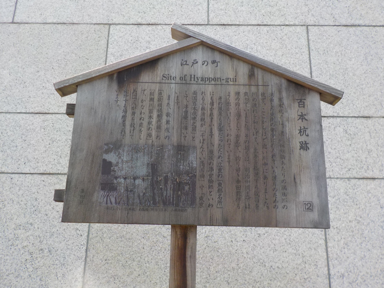 百本杭は、隅田川の現在の両国駅側の岸が浸食されるのを防ぐために打ち込まれた多くの杭のことだそうです。
