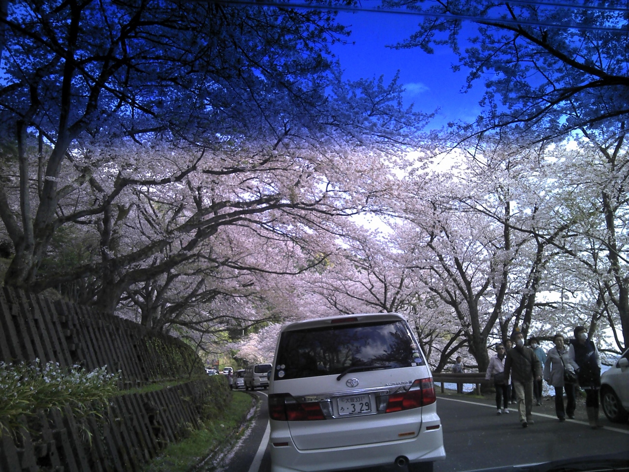 混んでるし、車も通行止めなので、行くつもりがなかったのですが、 たまたま通ったら空いていたので車で走ってみました。 初めて桜の時期に通りましたが、本当に綺麗で最高でした。 まだまだ人は居ましたが、何とか車で半島を一周できたのはラッキーでした。 車だと本当に贅沢なトンネル感が増します。