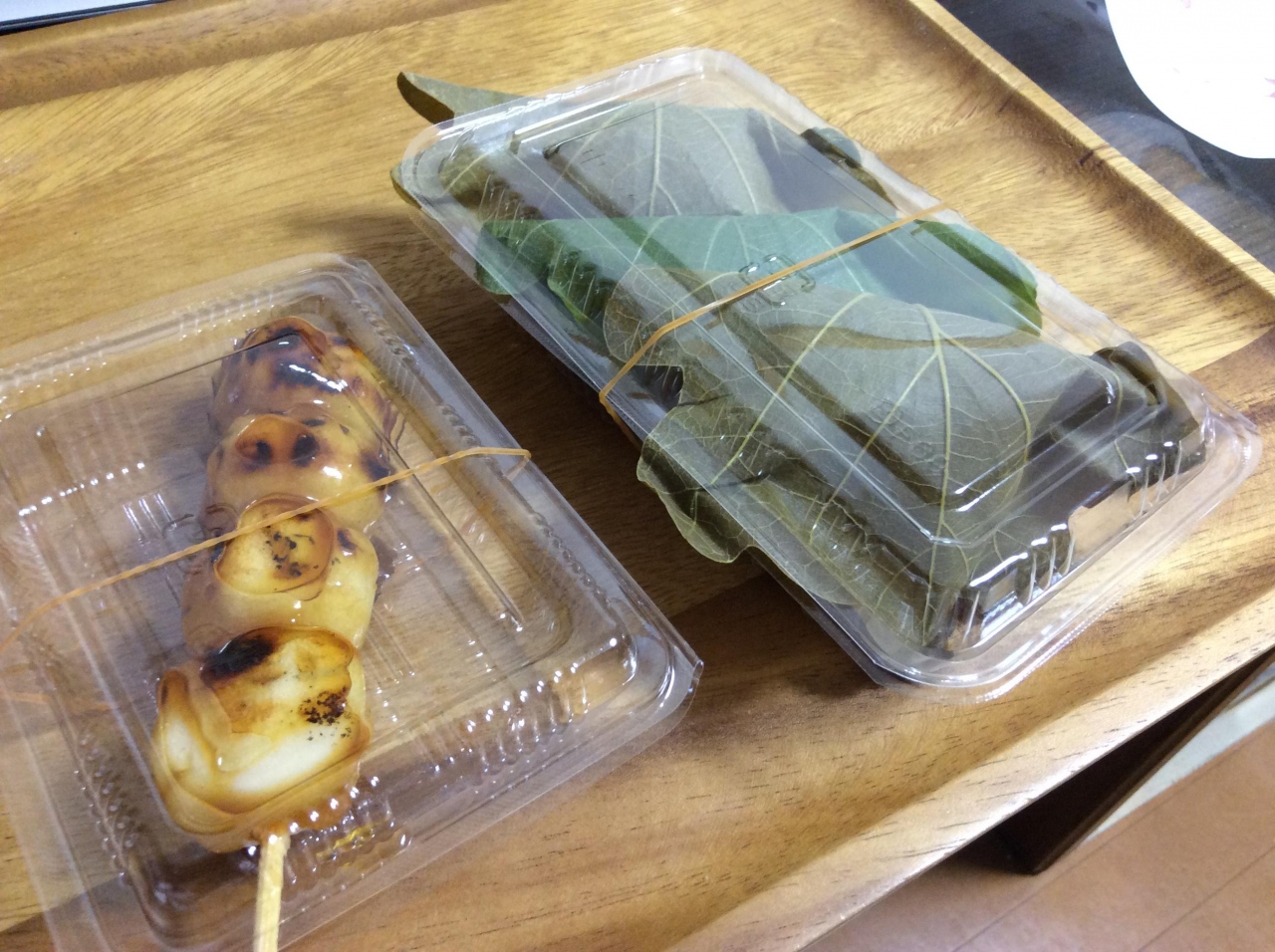 麩まんじゅうが有名なことを知らず、端午の節句のかしわ餅と出来たてだったみたらしだんごを買いました。かしわ餅はこしあん・つぶあん・みそあんと3種類もあり、全部おいしかったです。
