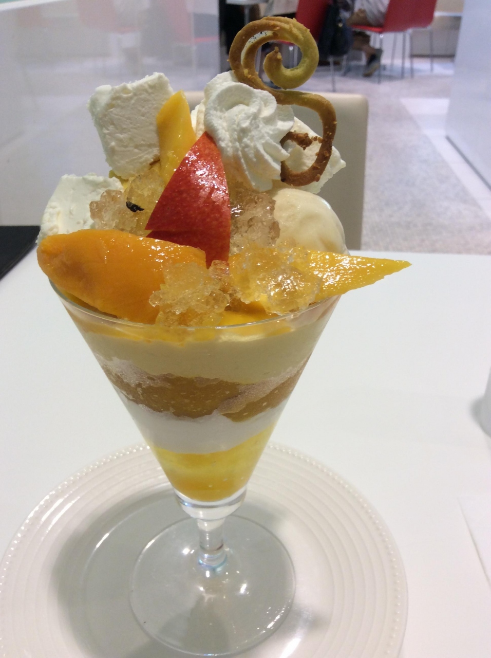 母の日向けのイチゴのパフェと悩みましたが、マンゴーのパフェを頼みました。写真にある四角のチーズ?がおいしかった。東急ハンズで立ちっぱなしでずっとショッピングをしていたので、甘いもので疲れもとれました。