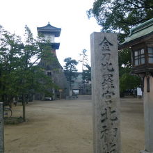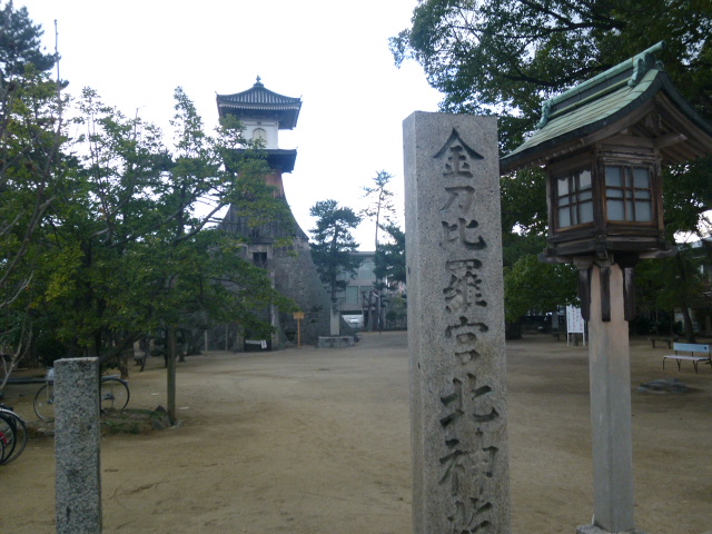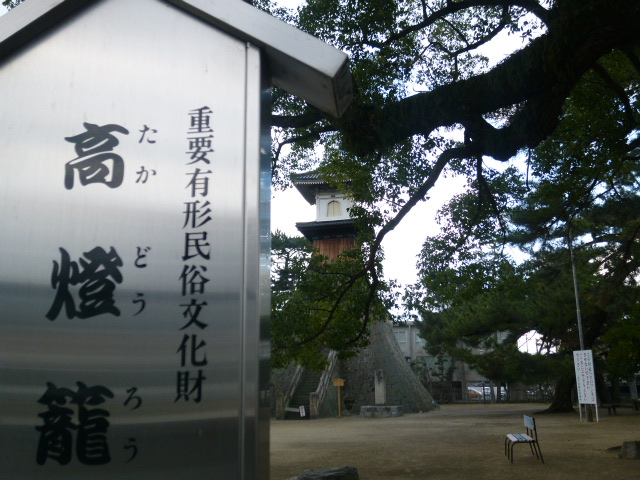 琴電琴平駅の目の前です。1859年建立で翌年に完成とのことです。木造三階建ての高さ約10mで日本一高い燈籠なので「高燈籠」と呼ばれています。「金刀比羅宮北神苑」との石標がありましたが、どうやらこの地域が正式名称のようです。日本中には様々な駅があり、その駅前にはシンボルが建っていますが、清楚なこの駅に立派な歴史的建造物は珍しいのではないでしょうか。車で来られる方も是非立ち寄ってください。