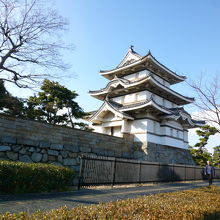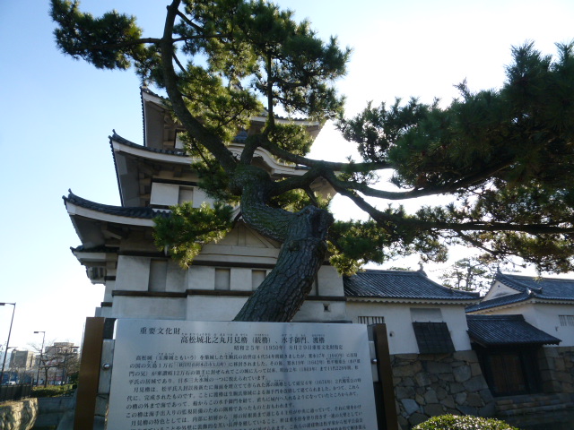 今日は香川県高松市にある高松城跡、玉藻公園に来ています。なかなか静かで整備された公園ですね。東入口より入って艮櫓や披雲閣、鞘橋などをぐるーと回って見学しましたが、この「月見櫓」が見当たりません。よくよく案内図を見ると北方向にあり公園内からよりも外からの方が良く見えるようです。ちょっとした公園ベンチがあります。櫓は三層式でこれでもお城の風格はありますね。