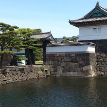 東御苑の中から大手門をくぐって外に出て、皇居正門の方へお堀沿いに歩いて行く時に見つけた門です。皇居参観者や皇居内で働く人たちが皇居に出入りする時に使う門のようで、一般の観光客は出入りできないようです。入口に警備の方が居て、柵を閉めてあります。