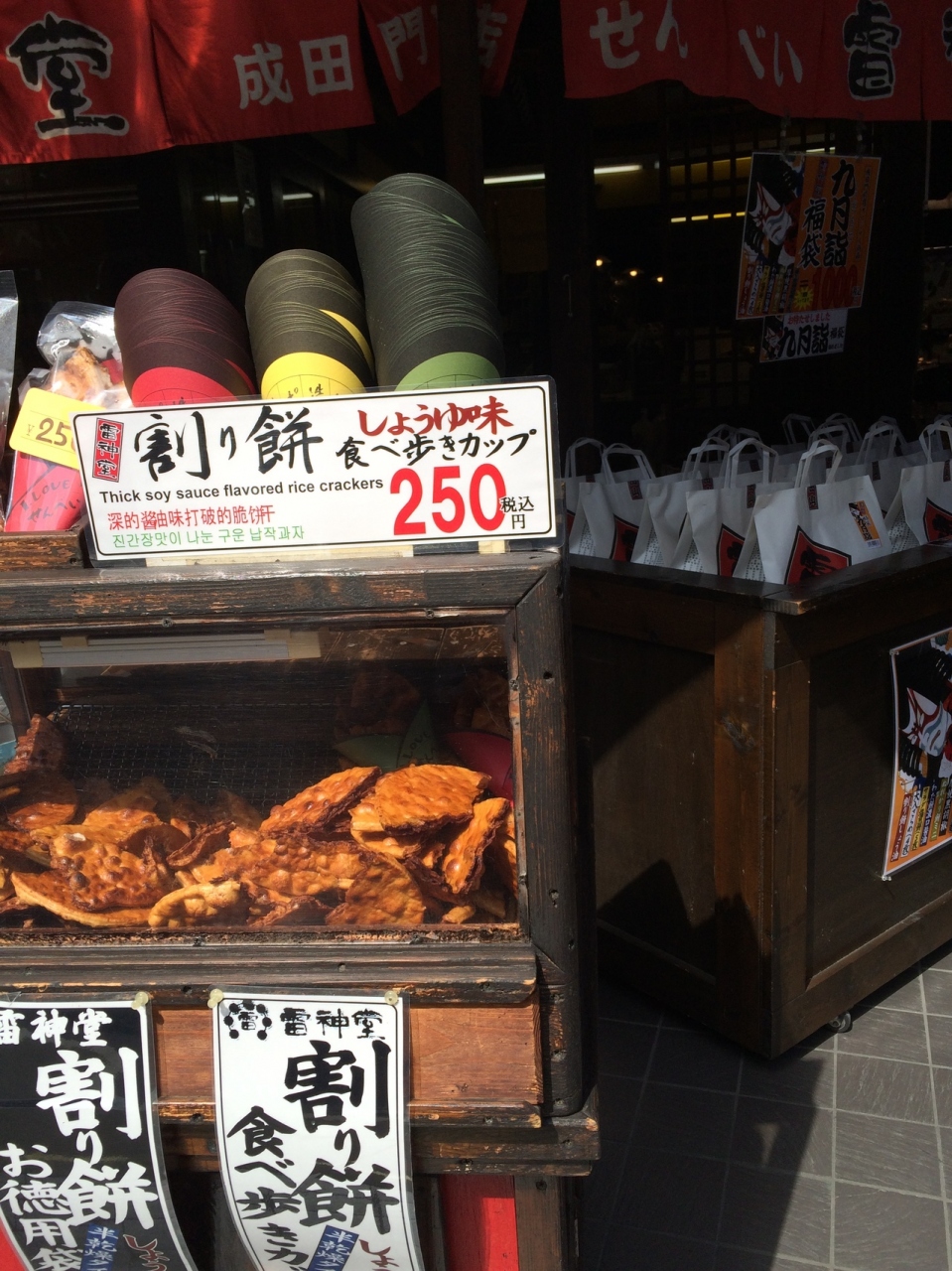 成田山の大きな門を出、歩いていると商店街の一角に煎餅屋を発見。店頭で煎餅を注文焼いているので香ばしい匂いが購買欲を注文そそりました。割リ煎餅を持ち帰りで食べながらその後散策しました。醤油の香ばしさが良かったです。店内にはたくさんの煎餅が売っていて土産に良いです。