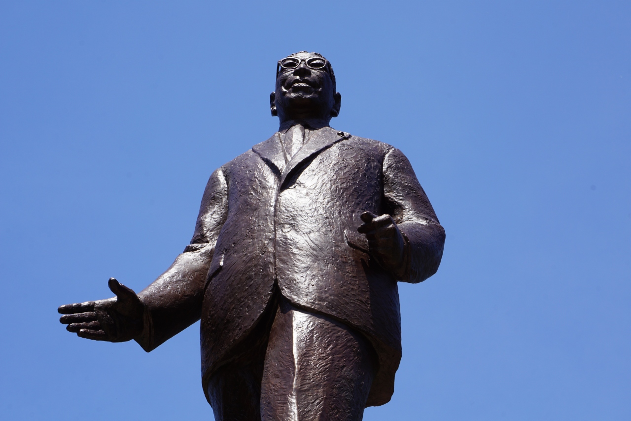 池田隼人氏銅像は、広島城のお堀端、RCCの向かいの公園のような一角にありました。ちなみに、池田隼人は、「もはや戦後ではない」と戦後と決別する国民所得倍増計画で知られる総理大臣。竹原市の酒蔵に生まれました。
