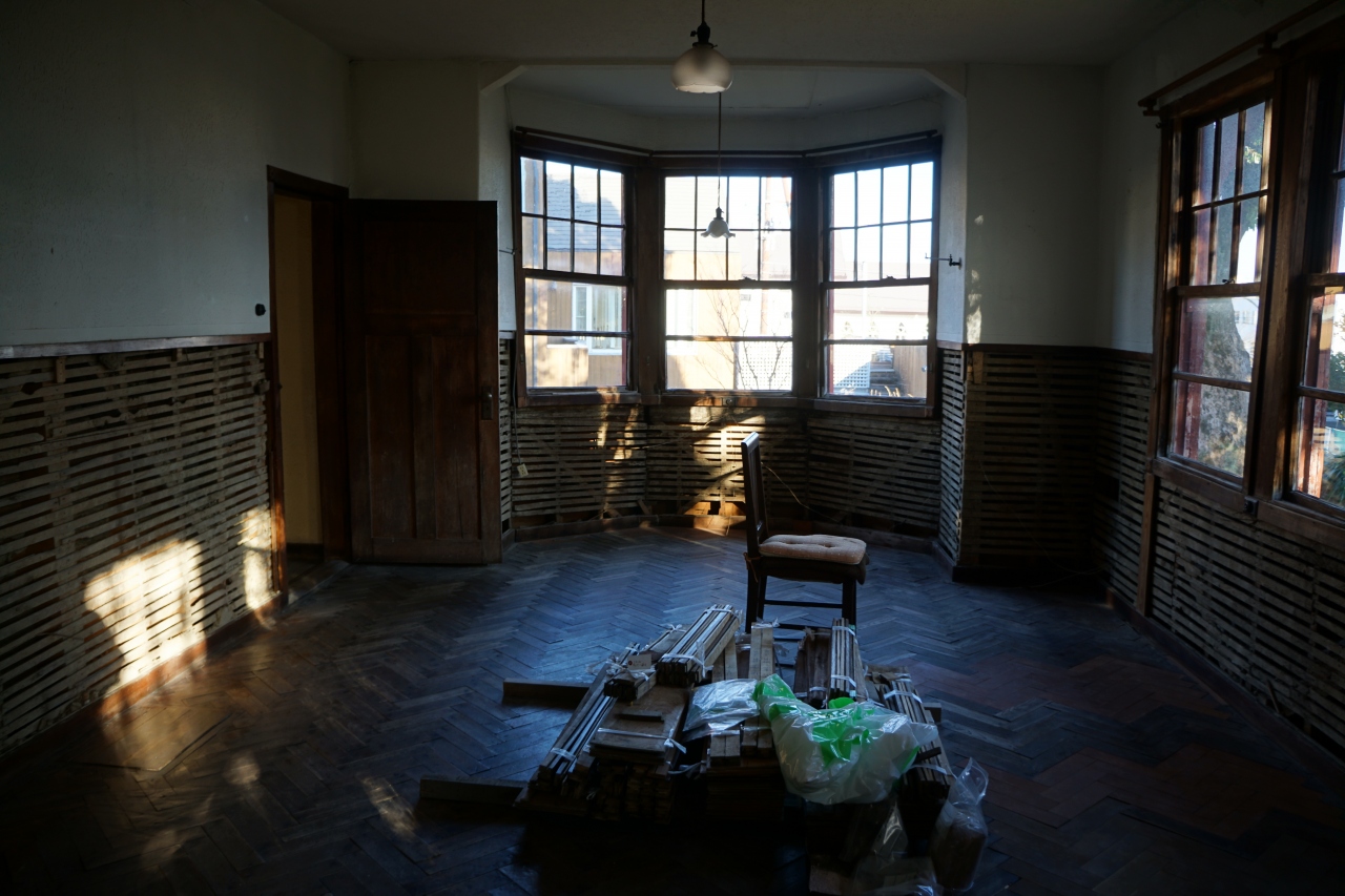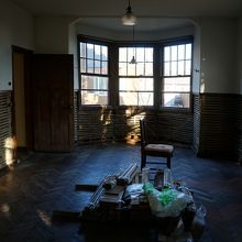 西村記念館は、新宮市内。一般住宅を公開しているといった施設です。ただ、この時期は、工事中。御主人が「工事中ですけどよければどうぞ」と言って、中を見せてくれましたが、社交場として使われていたようなホールはちょっといい雰囲気。外観の赤の配色も上品さを失っていないし、センスのいい建物です。