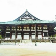 昭和初期に再建された建物のようです。大塔が目に入りやすいので、金堂は少しひかえめに見えますね。