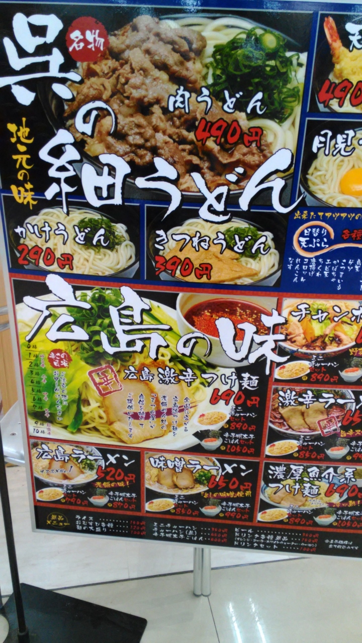 呉市の大和ミュージアムのそばにあるゆめタウン呉の3階フードコートにあります。うどんやラーメンなどが食べられるお店です。呉は細うどんが有名でそれも食べられます。フードコートなのであまり待つこともなく気軽に立ち寄れるお店です。