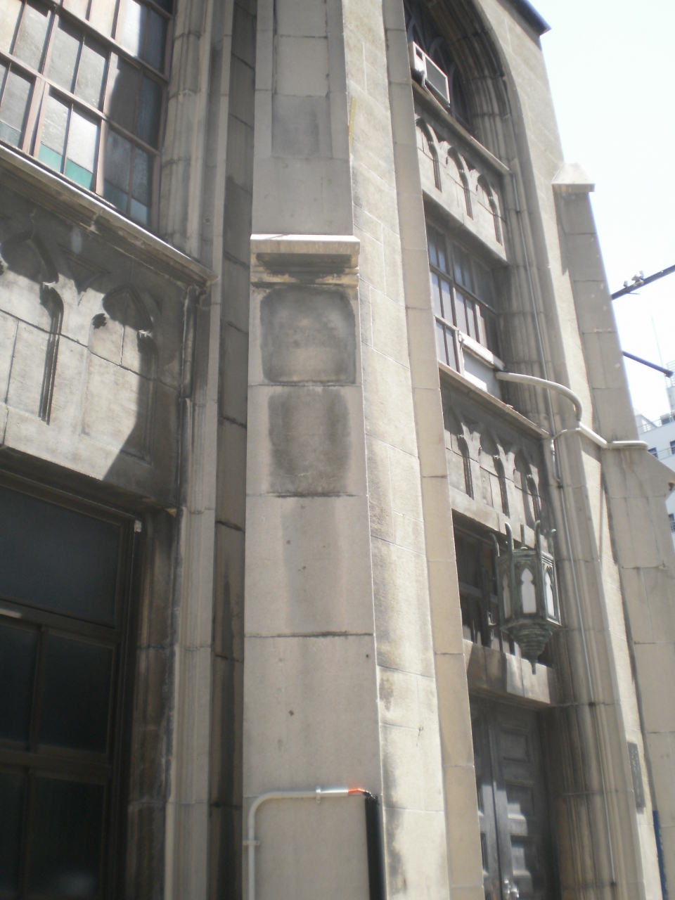 大阪地下鉄の北浜駅と淀屋橋駅の間に日本基督教団浪速教会はあります。 周辺はビジネス街ですので、連休に訪れたら閑散としていました。 ステンドグラスのある米国人の設計で重厚な感じの石造りの教会で、昔の大阪中心部の歴史を感じることができます。