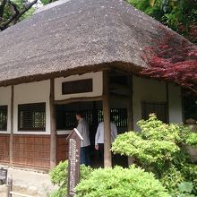 小石川後楽園の中央部に位置する大きな池の大泉水の東側の畔には少し開けた場所があって、松が植えられており松原が形成されています。そのはずれにこちらの九八屋はあります。正門から行った場合は、中央の大泉水を挟んで対面になる場所です。こちらの建物の名前の由来は、酒を飲むに、昼は九分、昼は八分にすべしと酒を飲みならず、万事控えるを良しとする。との教訓によるものです。戦災により焼失していますが昭和34年に復元した建物です。茅葺屋根の非常に屋根が美しい建物だと思います。