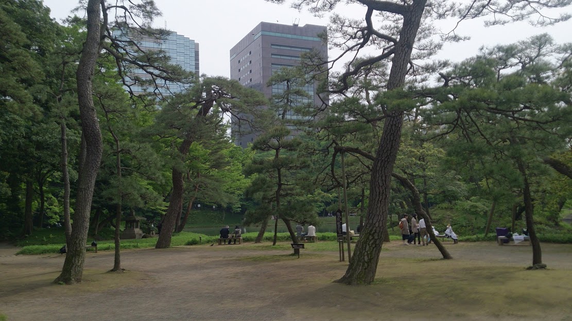 小石川後楽園は水戸徳川藩の江戸上屋敷跡にあって、日本や中国の名所旧跡が園内各所に再現されていたりしています。こちらの松原は、小石川後楽園の正門から園内に入りまっすぐ進み、中心部にある大きな池である大泉水の畔につきますが、正門側から見た場合、大泉水や蓬莢島を挟んで対面にあります。大泉水のほとりで少し開けた場所に、松が集中して植えられており、ミニ松原を形成しています。かなりコンパクトな松原ですが、きちんと意識して松原がつくられており、それなりの雰囲気はあります。