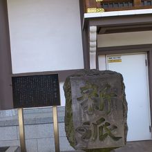 湯島天満宮の男坂の近くにある石碑ですが、とても不思議な形をしています。四角の中に大きく新派とだけ書かれていて、その下の部分が今にも折れそうなぐらい削られています。水谷八重子さんが所属していた新派の創立90周年を記念して新橋演舞場に立てられた記念碑がここに移されたのだそうです。