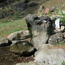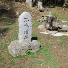 登山道入り口から少し歩くと最初の分岐「五叉路」があり、そこから10分ほどの小広い広場が不動清水です。