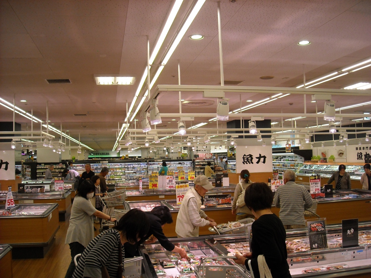 あきる野東急1階を占める地元の魚屋さんで寿司なども販売しています。近くに大型スパーのライバル店がありますが、鮮魚は活気があるようです。この日はアルゼンチン産の大海老の特価販売がありわざわざ足を運び、アメ横気分でちょっこっと買いすぎてしまいました。