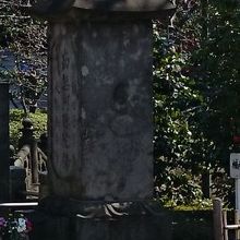 浅草寺には、数多くの碑や銅像が建てられています。そのうちの一つである「三尊名号供養塔」は本堂の西側にある「影向堂」近くにあります。塔正面には「南無阿弥陀仏」、向かって右に「観世音菩薩」、向かって左に「大勢至菩薩」と、刻まれています。