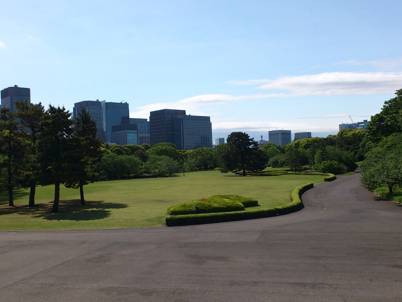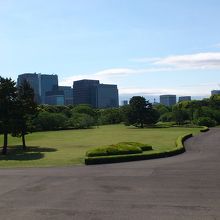 皇居の東御苑はかつては江戸城の本丸があった場所だったそうです。北桔梗門から東御苑の中に入ったのですが、目の前の天守閣後に登ると、江戸城の本丸跡が一望できます。ただし建物は何も残っていません。松の廊下跡もこの本丸後にありますが、ただ看板が立っているだけでした。