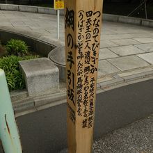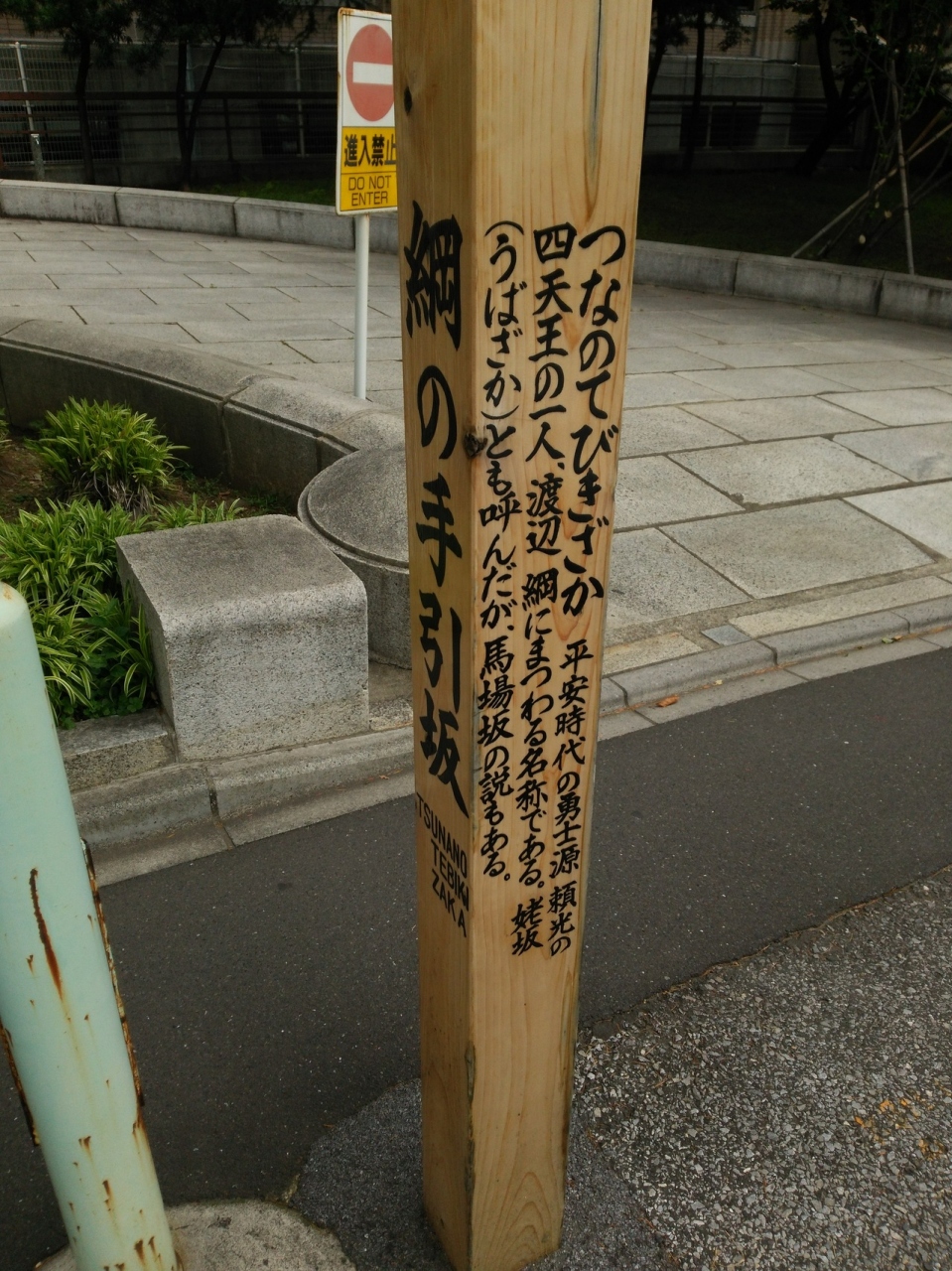 JR田町駅から徒歩10分程度、三田1丁目と2丁目の境にある坂道です。この坂道は、平安時代の勇士源頼光四天王の一人、渡辺綱が幼少の砌に姥に手を引かれて行き来したという伝説からこの名前が付いたとも言われています。姥坂とも呼ばれたようですが、馬場坂との説もあるようです。