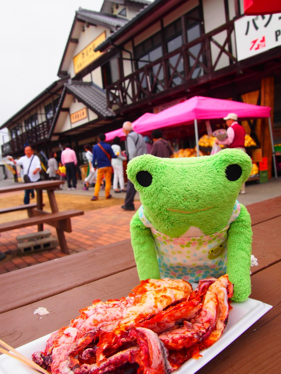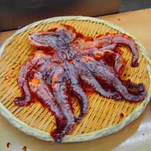 たれに漬け込んだタコを丸ごと1匹プレスして焼きます。