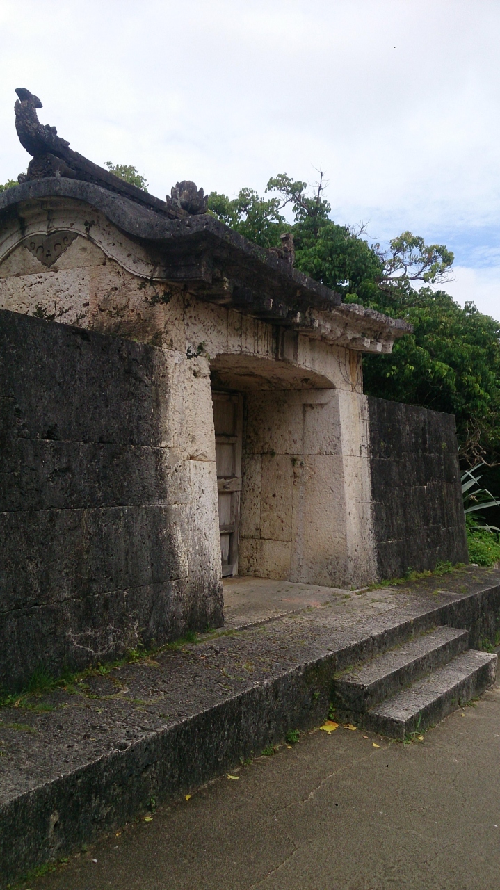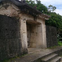 首里城の駐車場やバス停のある方向から、公園内を守礼門の方へゆるい坂を登っていき、守礼門をくぐるとすぐ左手にあります。世界遺産であることを示す立派で大きな、御影石のプレートが組み込まれたものがあるので、すぐに分かります。門自体は周囲を石造りの塀で囲まれたところに設置されたもので門も石造りで瓦屋根がのっています。門扉は木製で歴史と風格を感じさせるものです。劣化している感じが余計にそうさせていると思います。この奥にある森の神様への入口として設置されています。
