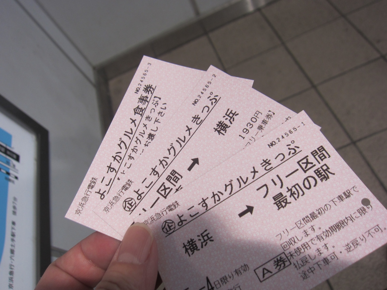 羽田へ行くときによく利用しますが、今回は横須賀へ行った際に利用しました。よこすかグルメきっぷで横浜から横須賀へ行きましたが、横浜から横須賀の指定区間の京急の運賃と指定区間の京急電鉄・京急バスがフリー区間となっていて、12店舗の中から横須賀海軍カレー又はネイビーバーガーが含まれている他、記念艦三笠、YOKOSUKA軍港めぐり、観音崎京急ホテルSPASSO、横須賀美術館の優待割引が利用できます。電車とグルメきっぷだけでももとが取れますので、海軍カレーやネイビーバーガーを食べて、優待施設も利用する予定がある場合は普通に切符を買って行くよりもお勧めです。購入は普通に当日券売機で購入できます。