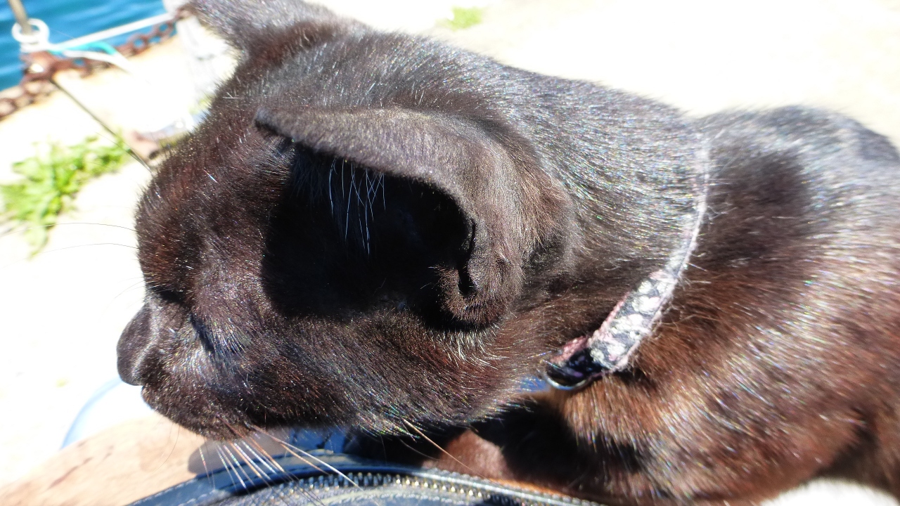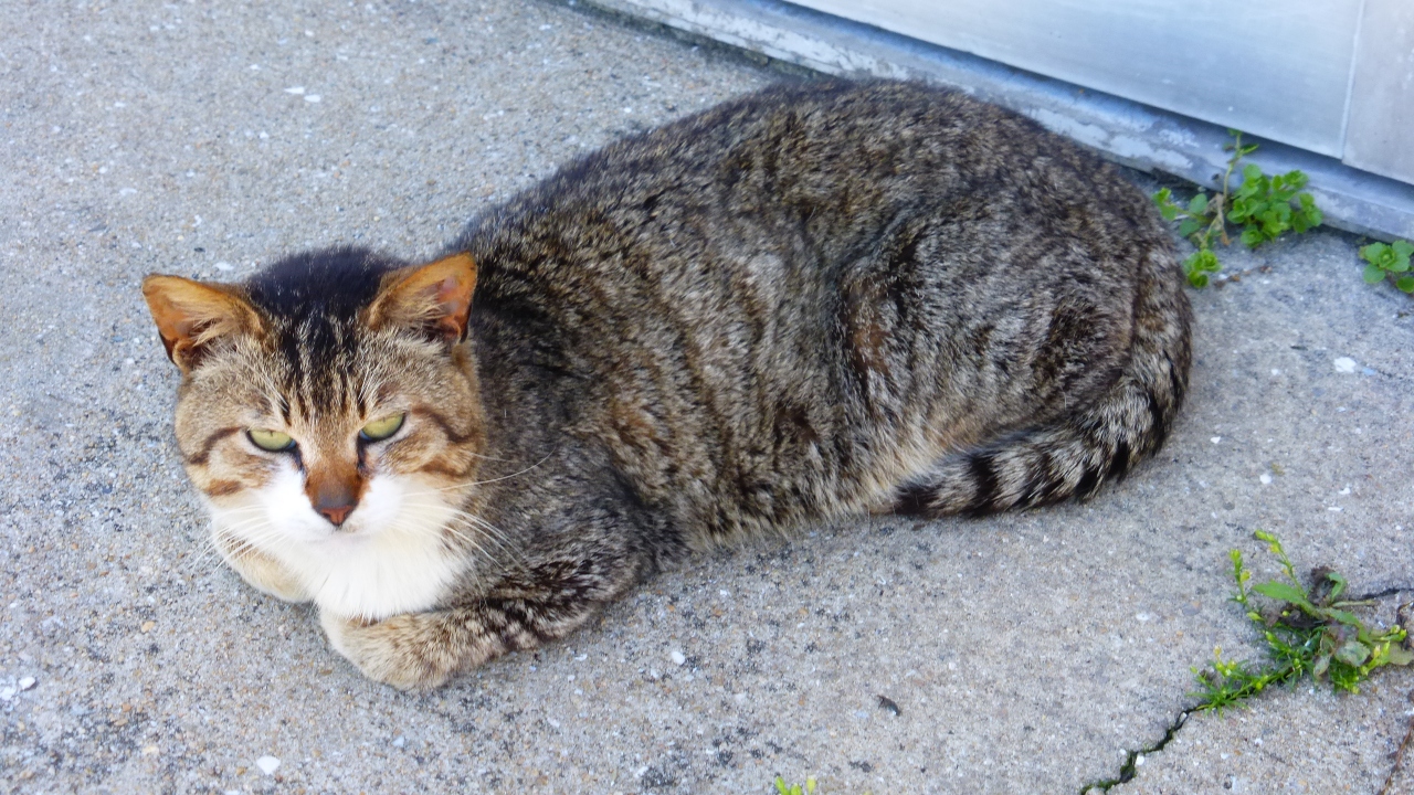 島に行った日(5月12日)は、天気が良くて少し暑かった為は、見掛けた猫の多くは、軒下や軽トラしたの日陰にいました。