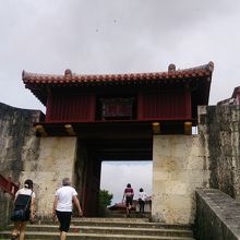 駐車場・バス停から首里城公園に入り、守礼門、歓会門、瑞泉門と上り坂、石段を登ってくると辿り着きます。こちらの門は別名、「かご居せ御門」と呼ばれており、王宮に来る身分の高い人が、かごでやってきても、この門の所では降りて王宮に入って行ったとされたことからこのような別名があります。また漏刻門ということで時間をはかるための水時計がこの櫓にあったことから、そのような名前になったようです。門自体は再建されているため、かなりきれいで新しい感じがします。