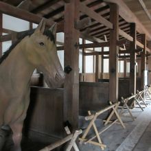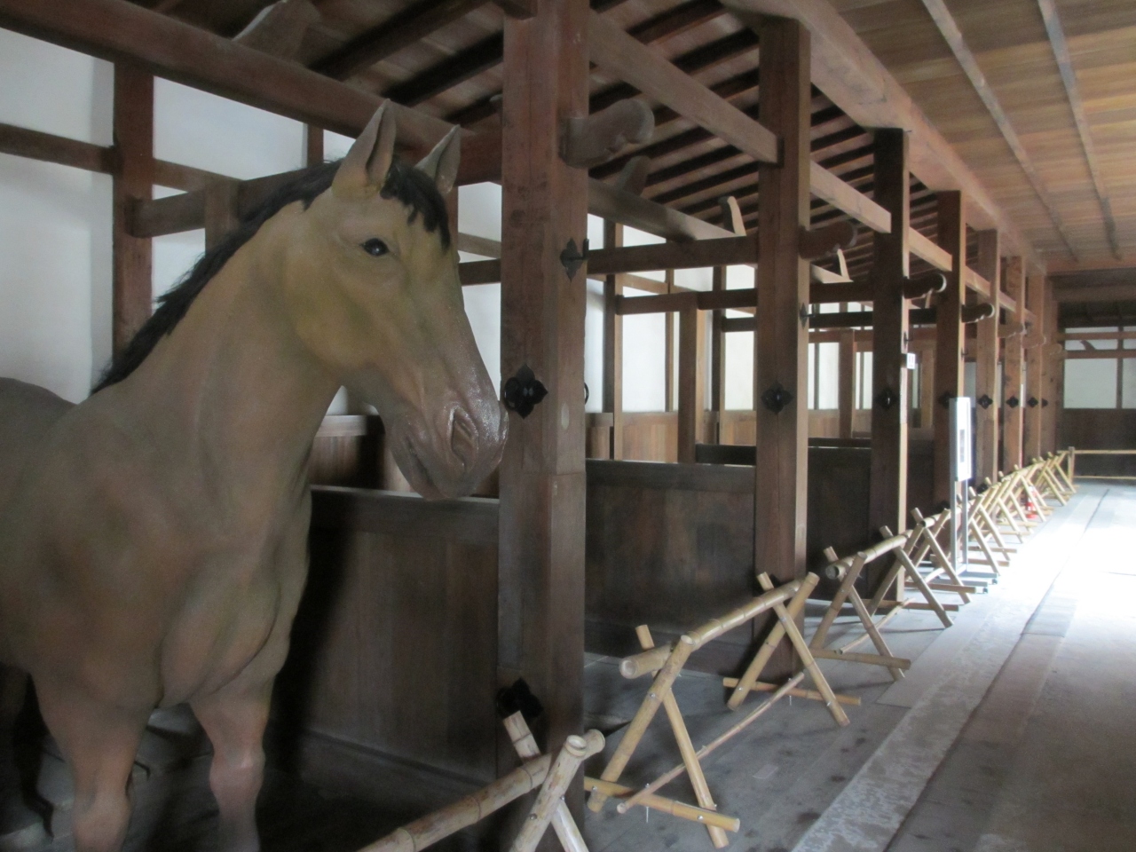 彦根城表門の外側、内堀の向かいに建っているL字形の細長い馬屋です。江戸・元禄時代に建てられ、当主などの馬が21頭収容できたそうです。屋根はこけら葺きで、城内に残る馬屋は彦根城にしか見られないとのことです。
