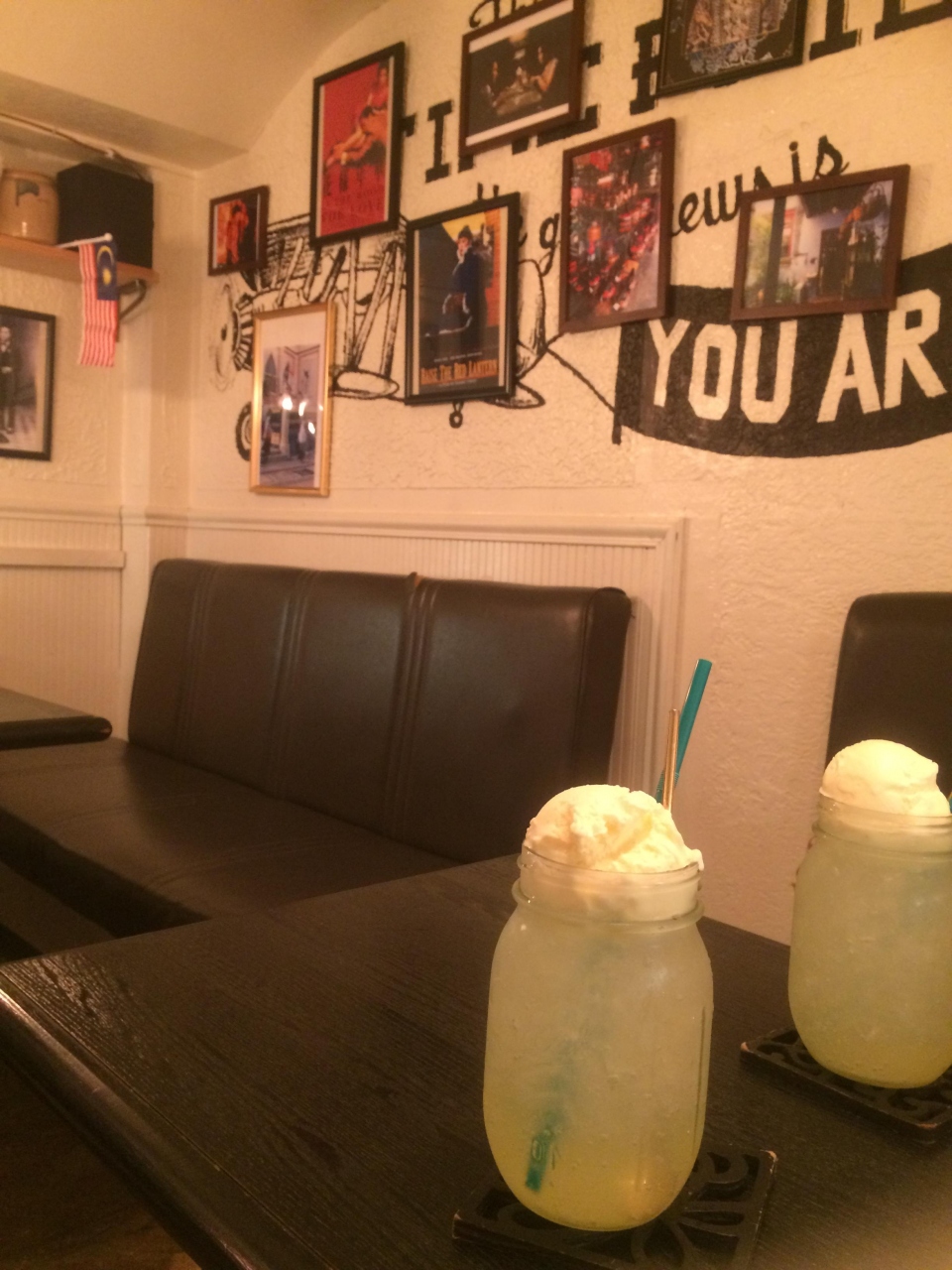 天満でごはんを食べた帰りに夜カフェがしたくてたどりついたこちら。24時閉店です。レモンスカッシュフロートをたのんじゃいました。何年ぶりか。2階のソファでゆったり。店内はマレーシアを意識しているみたいです。