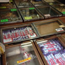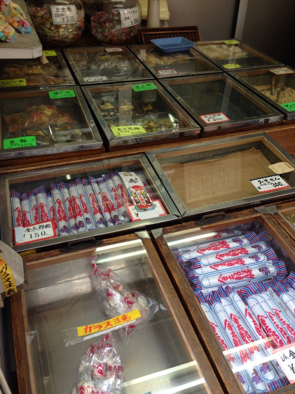 陳列台も昔の駄菓子屋を思い出すスタイルで これまた懐かしい飴が並びます。引き戸の向こうにお爺ちゃまが作業をしていて『ガンコオヤジだったらやだなー』とビビりながら声掛けたら、まぁ優しい方でした。