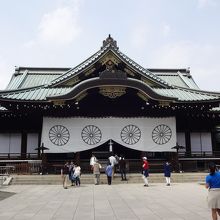 毎年、終戦記念日を迎える度にこの神社が大きくクロースアップされますが、実は初めて訪れました。九段下から歩くこと約10分、大きな鳥居をくぐり、舗装された参道は、広く、長く、ちょっと日本離れした印象でした。境内はこじんまりしていましたが、熱心にお参りしている人が絶えません。外国人の姿も多数見かけました。国内外に波紋を投げかけるこの神社は、そもそもどのような神社なのか。改めて考える気持ちになりました。桜は散ってしまいましたが、境内の桜の木を見て、靖国神社境内にあるソメイヨシノは、気象庁が東京の桜の開花宣言をする際の基準木となっていることを思い出しました。