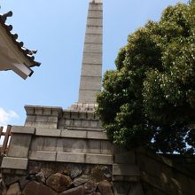 甲府城跡の舞鶴城公園には、エジプトのオベリスクみたな塔が建っていて、遠くからもよく目立ちます。遠くから見たときには、お城には似合わない不思議なものに思えましたが、鉄門をくぐって城内に入って説明書きを読むと、山梨県の御料林が県に下賜されたことを記念して建てられた塔だそうです。